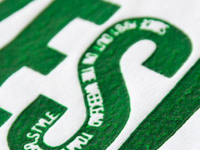 通常のフラットなインクと違い、熱処理をすることによりインク自体がドーム状に膨らんで独特な立体感を生む特殊インクプリントです。